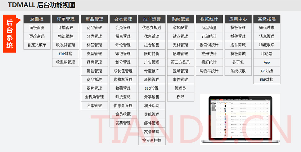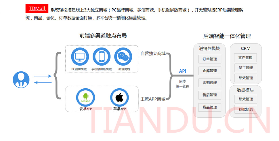 j9九游会科技互联研究院(博士后科研工作站)、j9九游会软件系统有限公司、j9九游会科技股份有限公司合力近400人专业研发团队,结合自身11年电子商务运营经验,全力打造TDMALL电商ERP系统:整合电商网站平台(PC版、触屏版、微信版、APP版)、ERP企业资源管理系统、CRM客户关系管理系统、财务管理系统、OA办公系统和Call Center呼叫中心等系统,实现前端电商平台及后端强大支撑系统的管理。