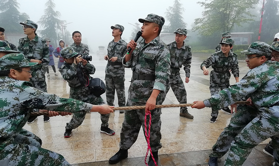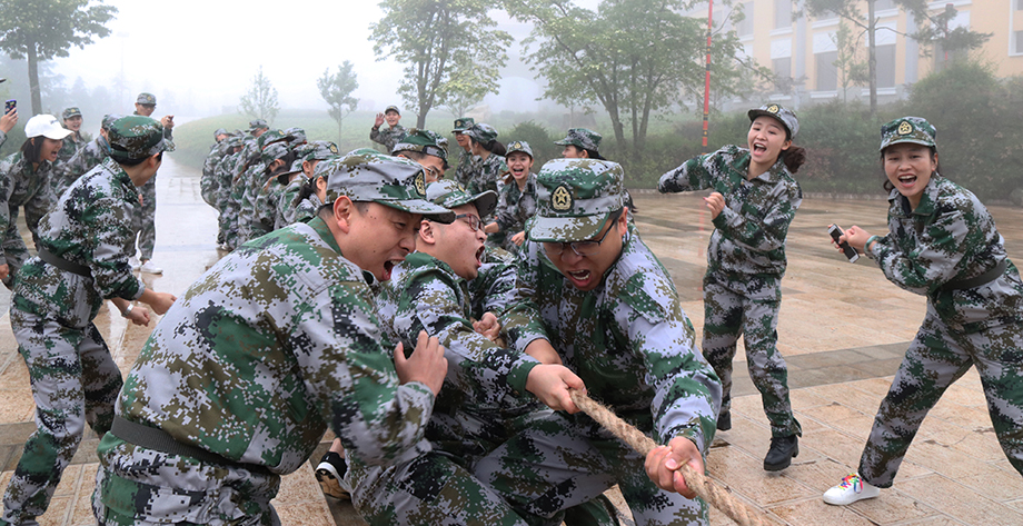 相比较刚开始的魔鬼训练,之后就轻松了一些,一来是大家已经适应这种节奏了,二来教官也在日常训练过程中加入了一些趣味活动。例如以公司为单位的拔河比赛,虽然场地湿滑,状况百出,但是大家谁都不肯服输,赛场上的气势如虹破竹。