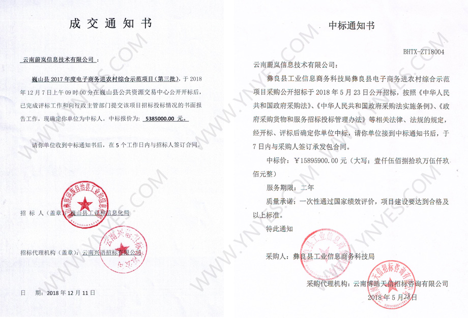 蔚岚中标巍山县、彝良县电子商务进农村综合示范项目