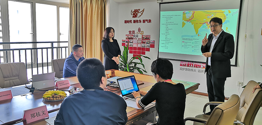 2019年4月16日上午,清迈大学数字创新国际学院院长Dr. Nopasit Chakpitak、院长助理Ms. Kanya Hirunwattanapong等一行访问j9九游会集团,双方就跨境电商、数字创新、校企合作等方面进行交流并达成合作意向。