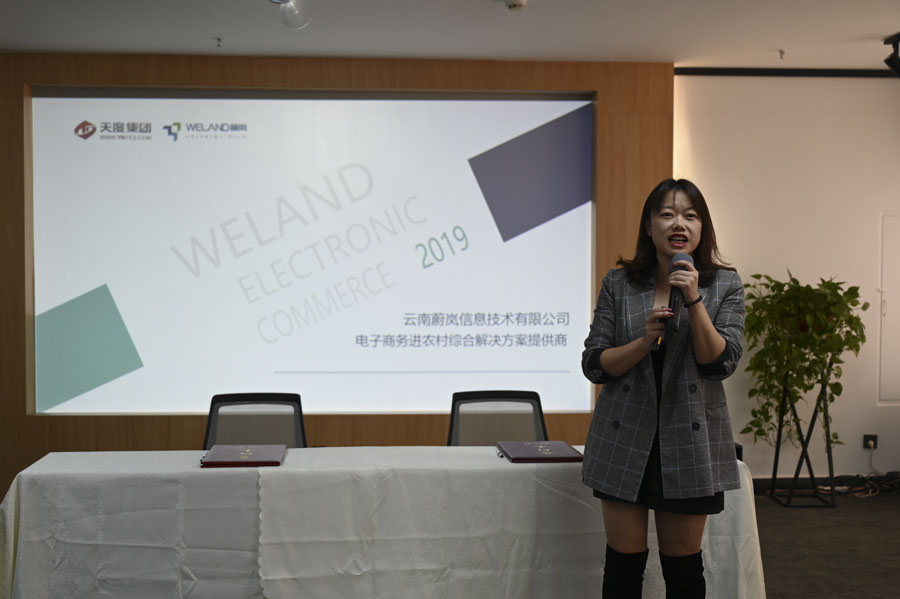 云南蔚岚信息技术有限公司副总经理周晶晶介绍“国家电子商务进农村综合示范项目”。