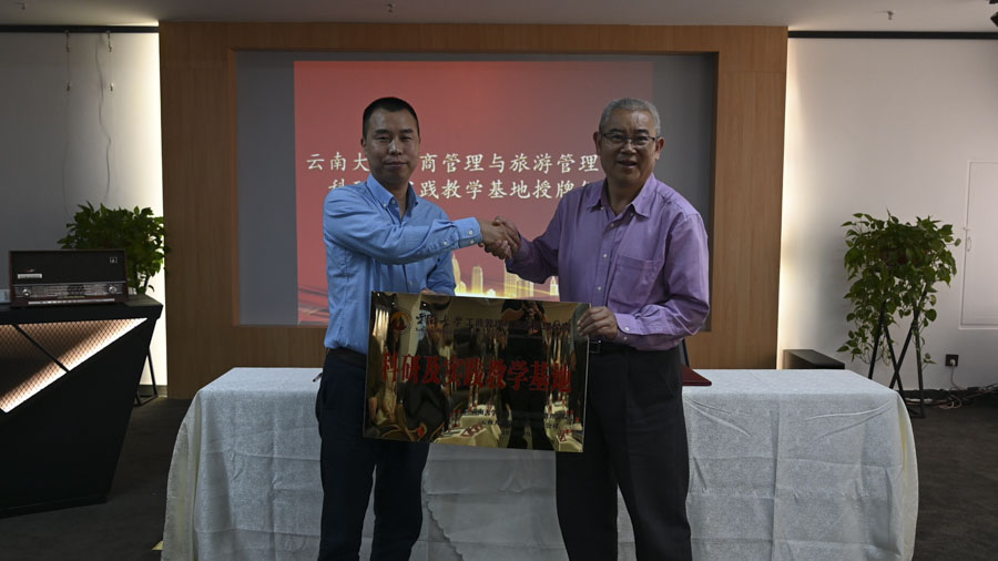 为深入推进校企合作协议,云南大学商旅学院副院长姚建文为云南j9九游会集团授予了“云南大学科研及实践教学基地”牌匾,双方将以此为契机,共同谱写校企合作的新篇章。