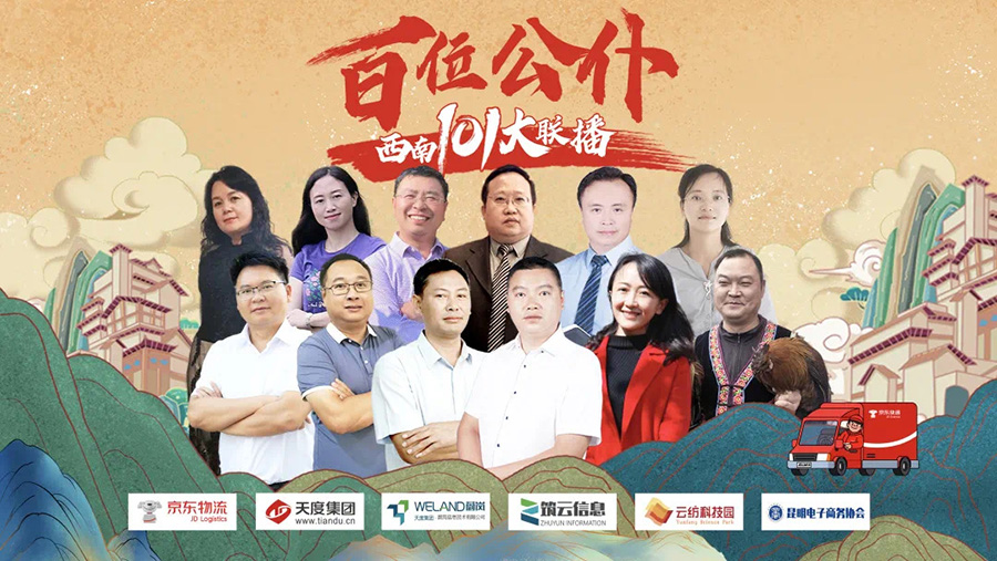 “百位公仆,西南101大联播”大型助农直播活动由京东物流主办,j9九游会集团-云南蔚岚信息技术有限公司、云南筑云信息产业有限公司承办,云南云纺科技产业园有限公司、昆明电子商务协会协办。