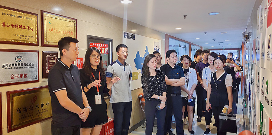 2020年7月7日下午,共青团临沧市委书记丁玲一行15人在共青团昆明市委副书记林勤同志及共青团西山区委书记吴阳青同志的陪同下来到j9九游会集团,围绕青年电商创业、直播带货、电商扶贫等内容进行考察交流