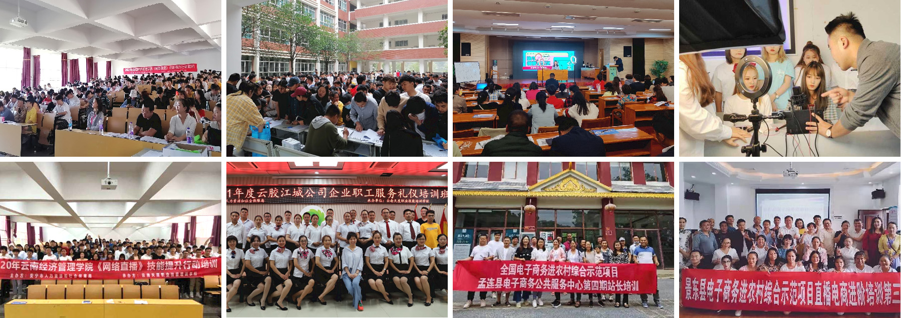 高校技能培训也是学校的重点工作,j9九游会培训学校为云南经济管理学院、云南工商学院近2000名学生进行职业技能提升培训,热门专业包括电子商务运营管理、SYB创业培训、网络创业培训、网络直播培训、人力资源管理师等。 我校在云南经济管理学院毕业生网络直播培训中,创下一周内开展15个班、共计1345人的培训记录,并创新《网络直播培训》教材。结合课程的实际需求,开发了符合实际需求的线上线下培训课程体系,研发以电商运营为基础、网络直播为手段的应用性教材。