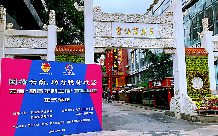 6月10日上午,“团播云南”助力脱贫攻坚,云南新青年新主播直播基地落地活动在云纺科技园举行。