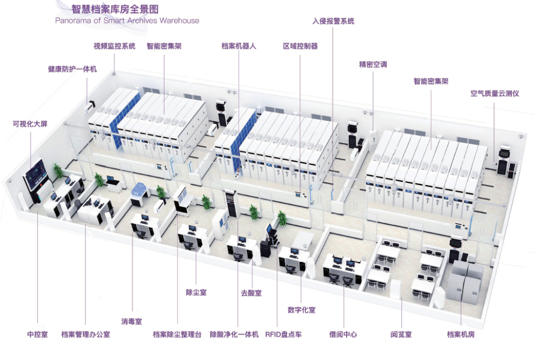 此外,档案托管中心还配备有消防监控、恒温恒湿管理、中央视频监控、非法入侵警报、门禁管理等系统,以及防腐防蛀、防光防尘等管理,配置车辆、扫描器及档案箱,拥有档案管理等相关系统,可以高效的保护和管理客户寄存的档案资料。