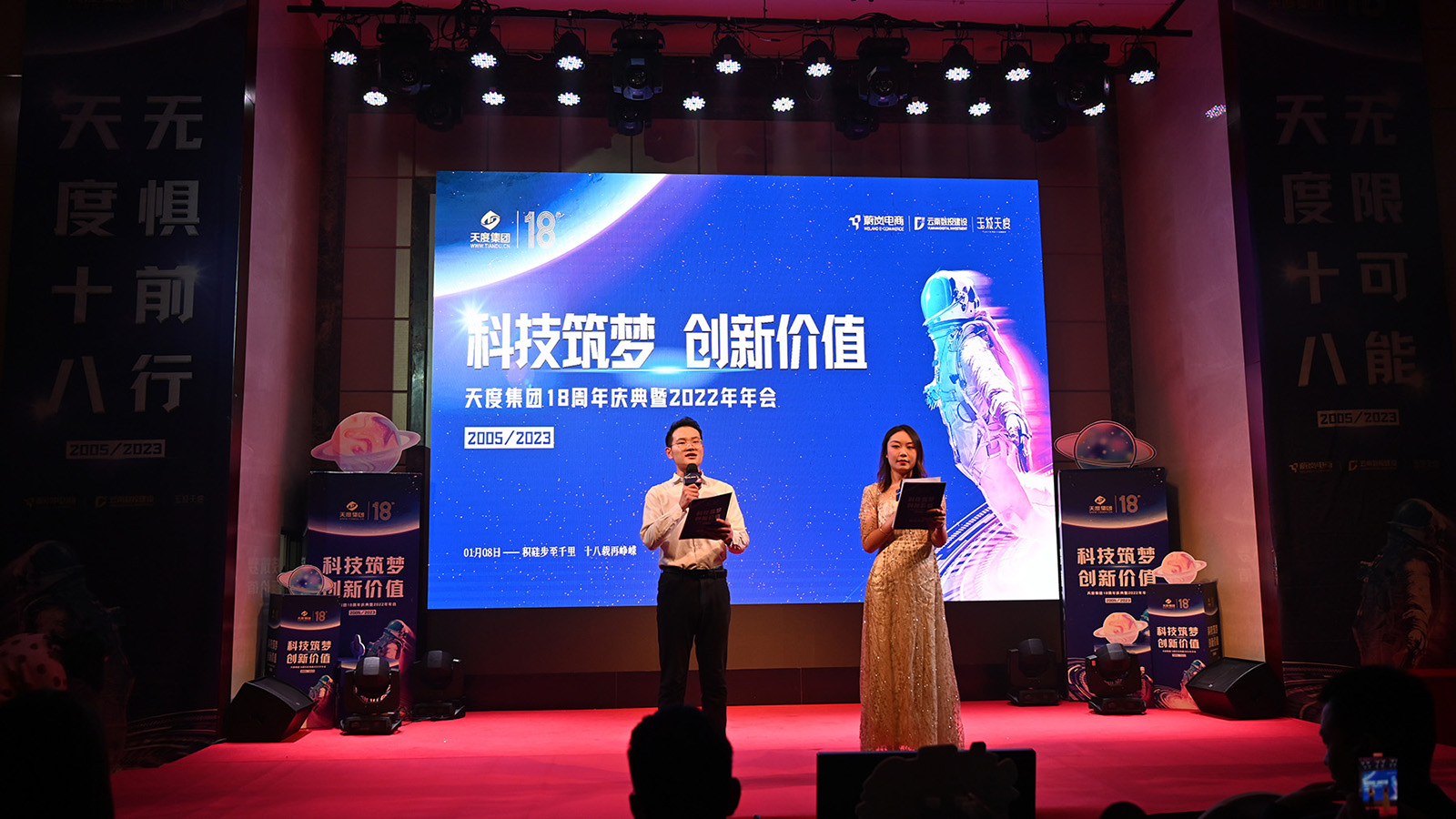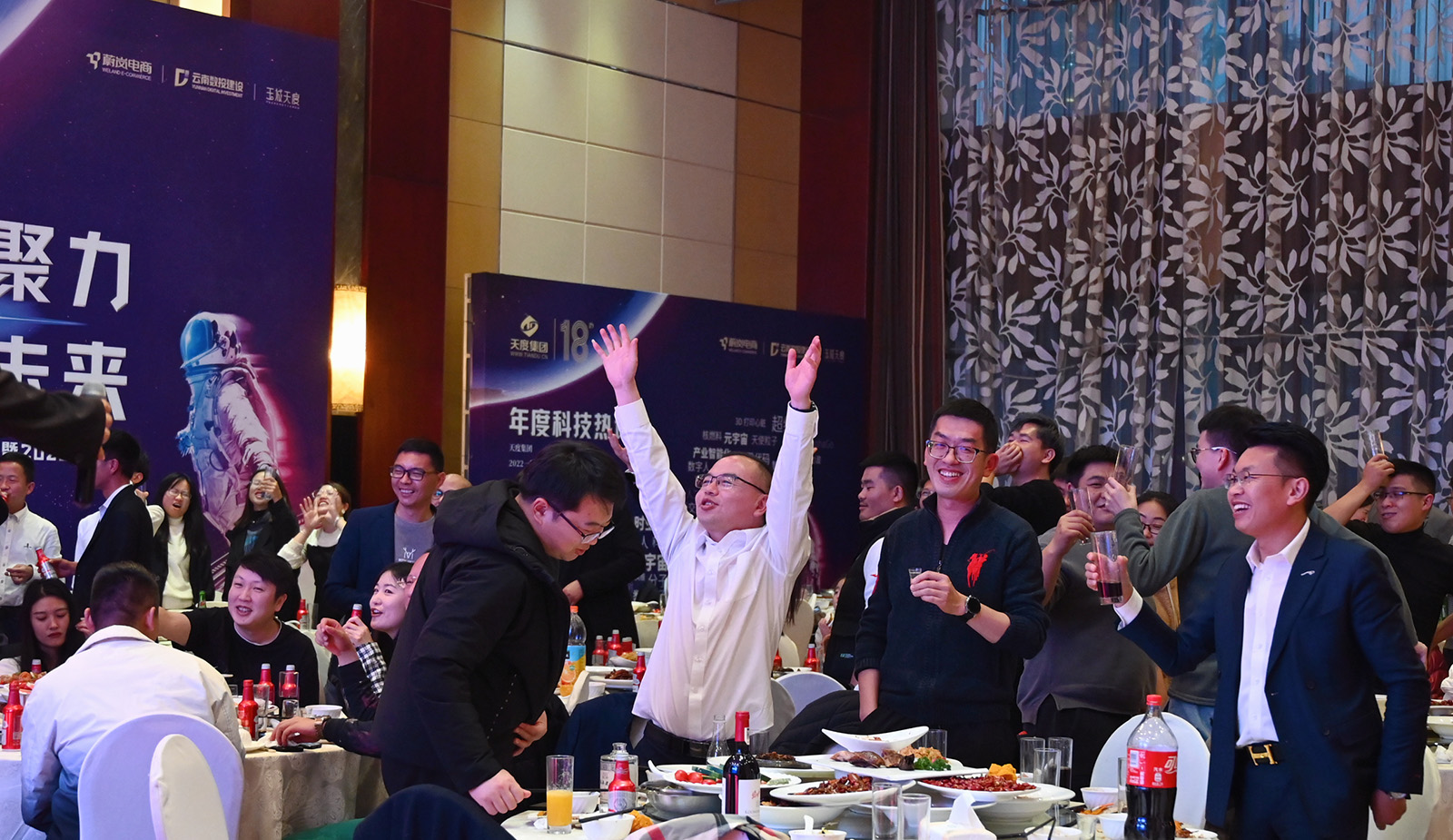 浩瀚宇宙、璀璨星际,以元宇宙为主题的舞台布景绚丽多彩;默剧、变脸、乐器、小人舞,主题多样的节目表演精美绝伦;回首过往、立足当下、展望未来的董事长演讲振奋人心;奖爱岗敬业、优秀员工的颁奖典礼树立集团模范;还有一轮轮的抽奖环节,将年会盛典推向一波又一波高潮。