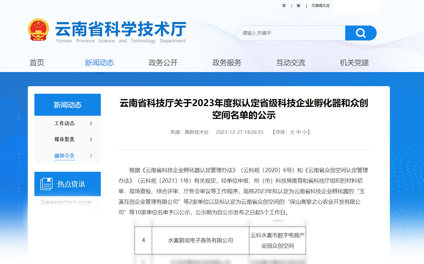 根据《云南省科技企业孵化器认定管理办法》(云科规〔2020〕6号)和《云南省众创空间认定管理办法》(云科规〔2021〕1号)有关规定,经单位申报、州(市)科技局推荐和省科技厅组织的材料初审、现场查验、综合评审、厅务会审议等工作程序,j9九游会集团旗下水富蔚岚电子商务有限公司获“省级众创空间”认定。目前公司已获得昭通市科技局“昭通市数字电商科技企业孵化器”、省工信厅“2022年度中小企业公共服务示范平台”等多项认定和荣誉。