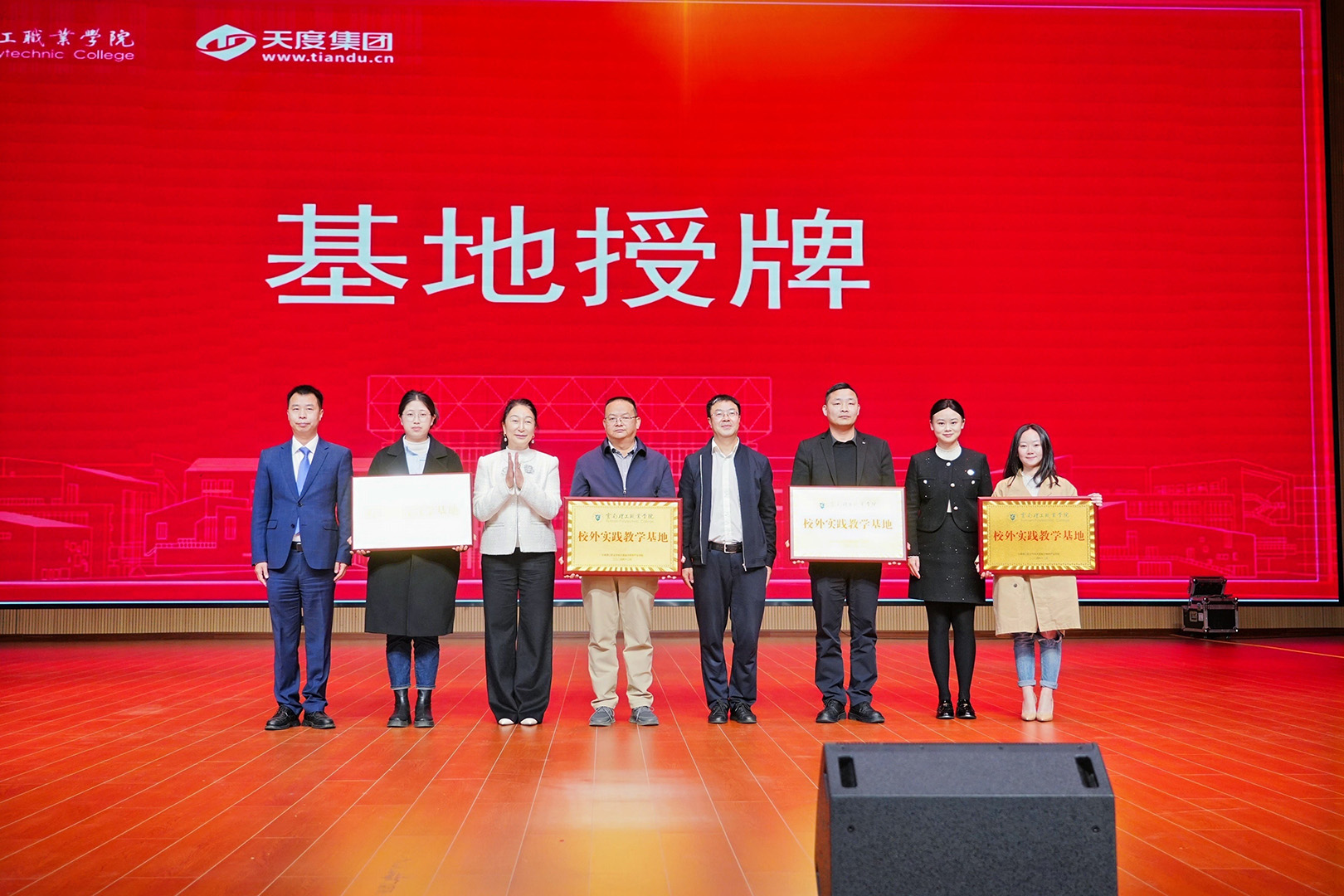与会领导共同为云南云纺科技产业园有限公司、云南猎狐网络科技有限公司、云南矩牛网络科技集团有限责任公司、云南飞融跨境电商有限公司进行实习实训基地授牌,进一步推动学校与企业开展多层次、多形式、多领域的合作,为共同培养社会需要的优秀人才提供契机。