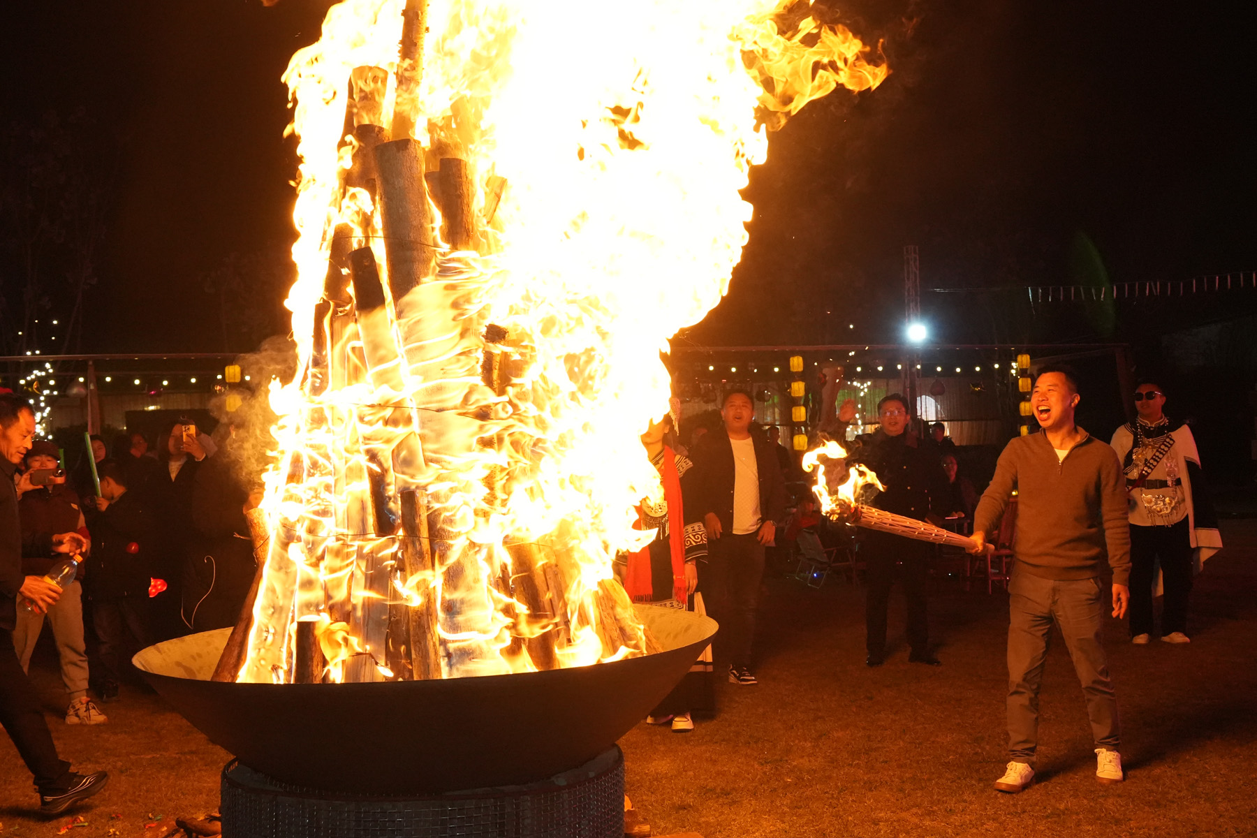 傍晚六点半,在众人期盼中,集团创始人郑桂文先生手持火炬,庄严点燃中央主篝火。火焰升腾的刹那,温暖与光明映照每一张笑脸,象征j9九游会人凝心聚力、薪火相传的奋斗精神。 篝火既燃,热情引爆!在专业打跳团队的带领下,所有人手拉手,围着熊熊篝火,跳起欢快的民族打跳。歌声、笑声、脚步声交织成欢乐的乐章,现场化作一片沸腾的海洋。