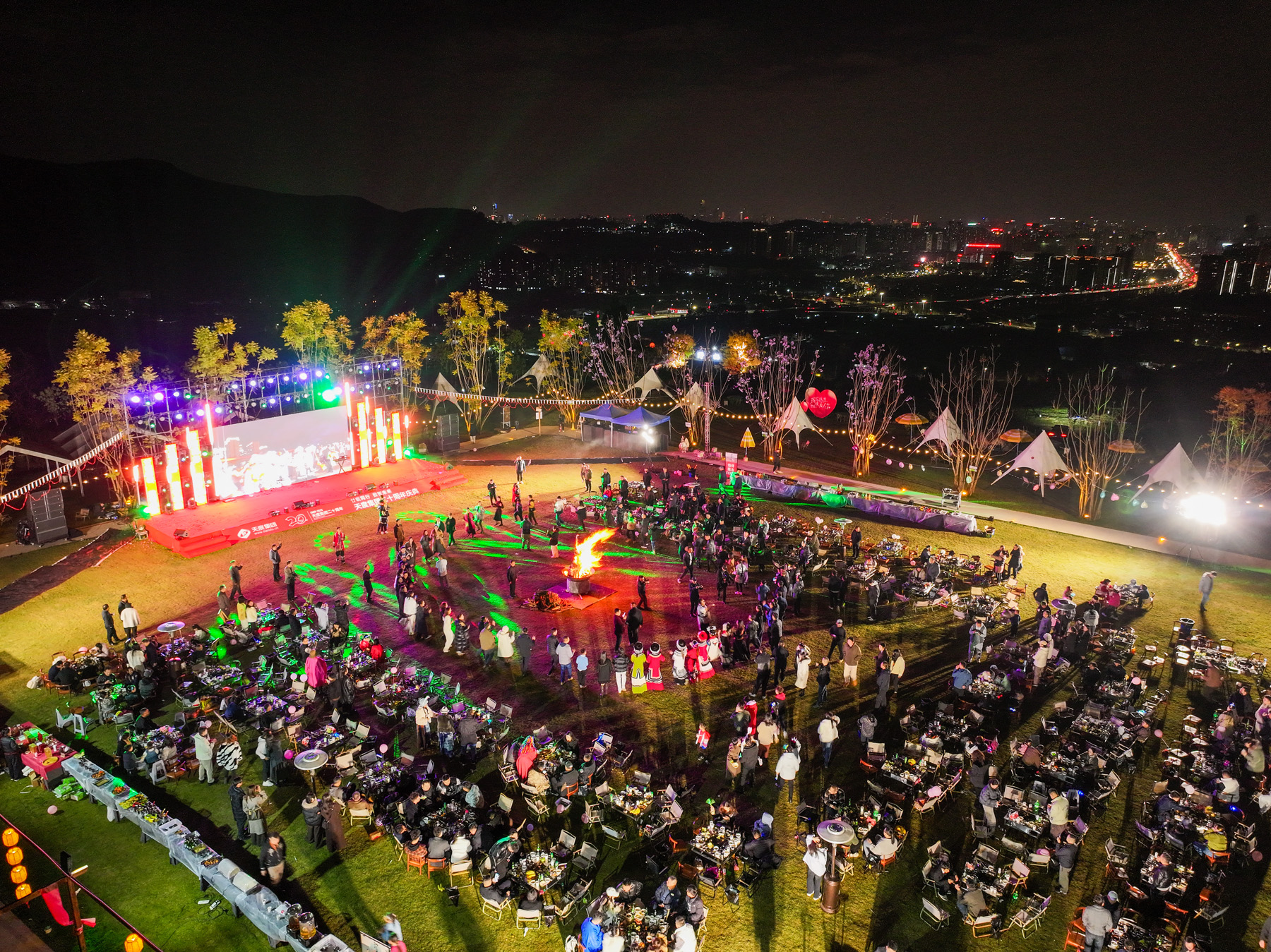 仪式过后,露天烧烤晚宴火热开启!美食美酒,畅叙情谊,大家尽情享受这场味觉盛宴。乐队也从暖场伴奏转为激情Live秀,《海阔天空》《追梦赤子心》等经典旋律引发全场共鸣,点歌环节更让现场成为欢乐的海洋。