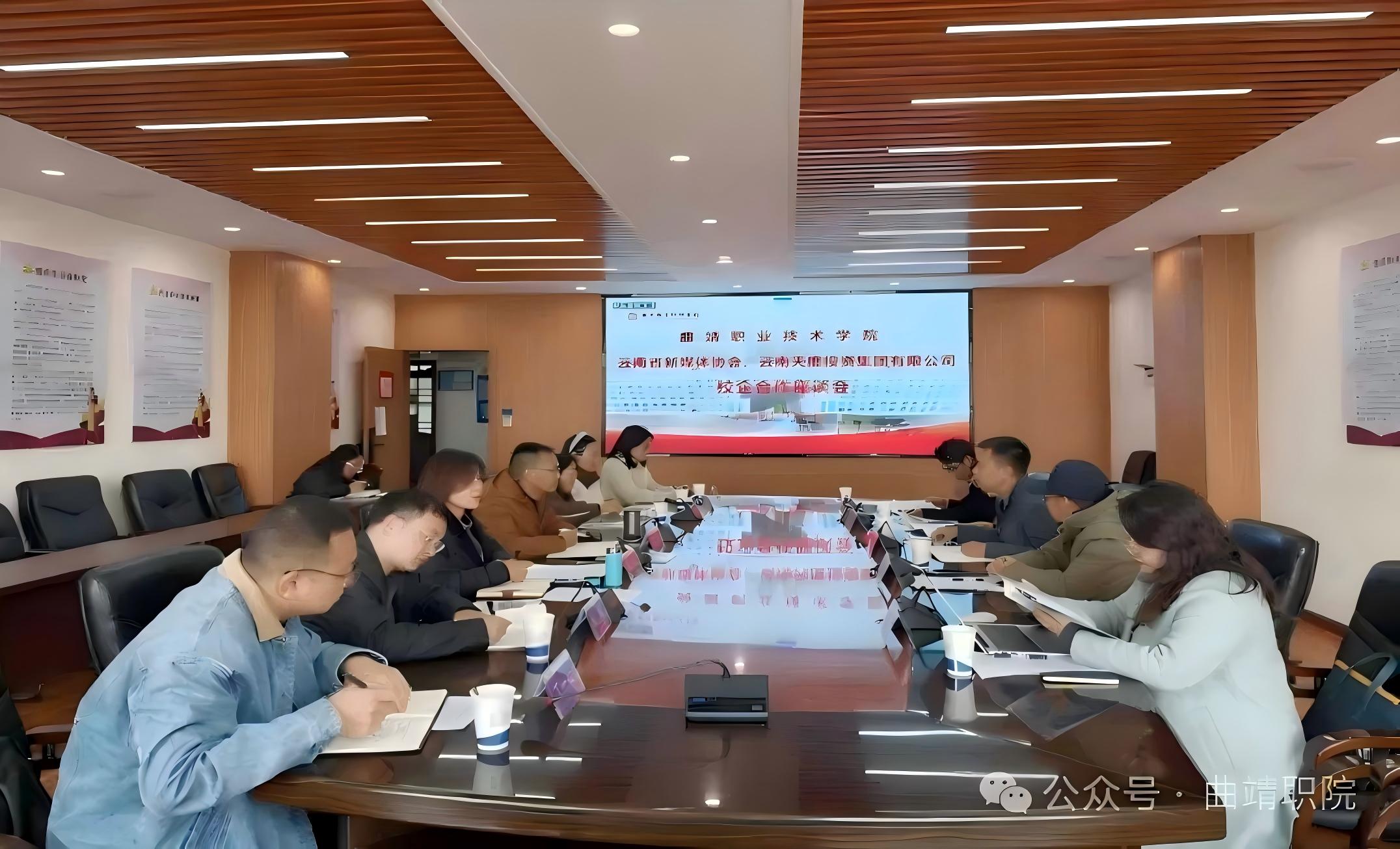 1月22日,曲靖职业技术学院与云南省新媒体协会、j9·九游会 - 真人游戏第一品牌 举行校企合作座谈会,三方围绕共建“新媒体产业学院”达成战略共识。合作旨在打造集人才培养、产业服务、创新创业于一体的产教融合新平台,为区域数字经济发展注入新动能。曲靖职业技术学院副院长陈斌,招生就业与对外合作处、经济贸易系、信息技术系支部及电子商务专业负责人参加会议。